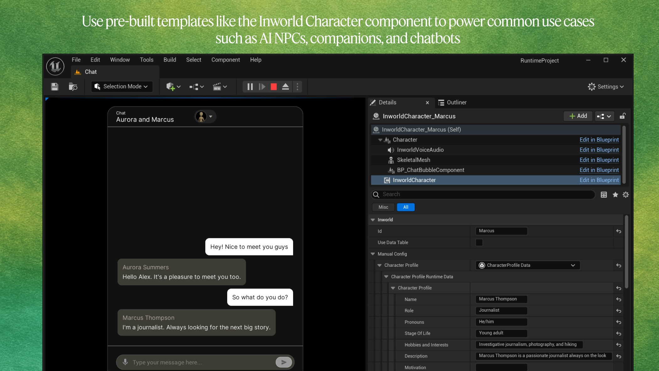 To get started buliding AI characters with Runtime:- Download our Unreal AI Runtime SDK and Character template, which brings our industry-leading Character Studio directly in-engine