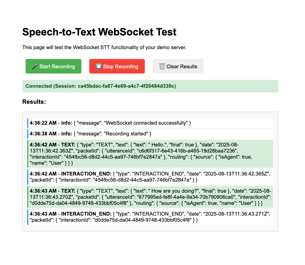 TEXT:{ text: { text, final }, routing: { source } }AUDIO:{ audio: { chunk: base64_wav } }INTERACTION_END: Signals completionERROR:{ error: string }