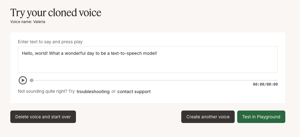 Test your cloned voice