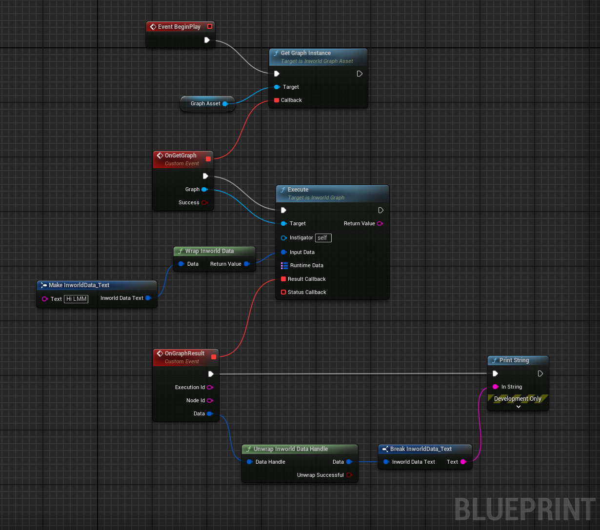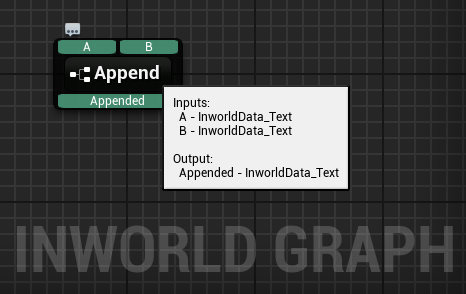 Graph input and result data must be of type FInworldDataHandle. Input data must be “wrapped” into FInworldDataHandle.- Blueprint