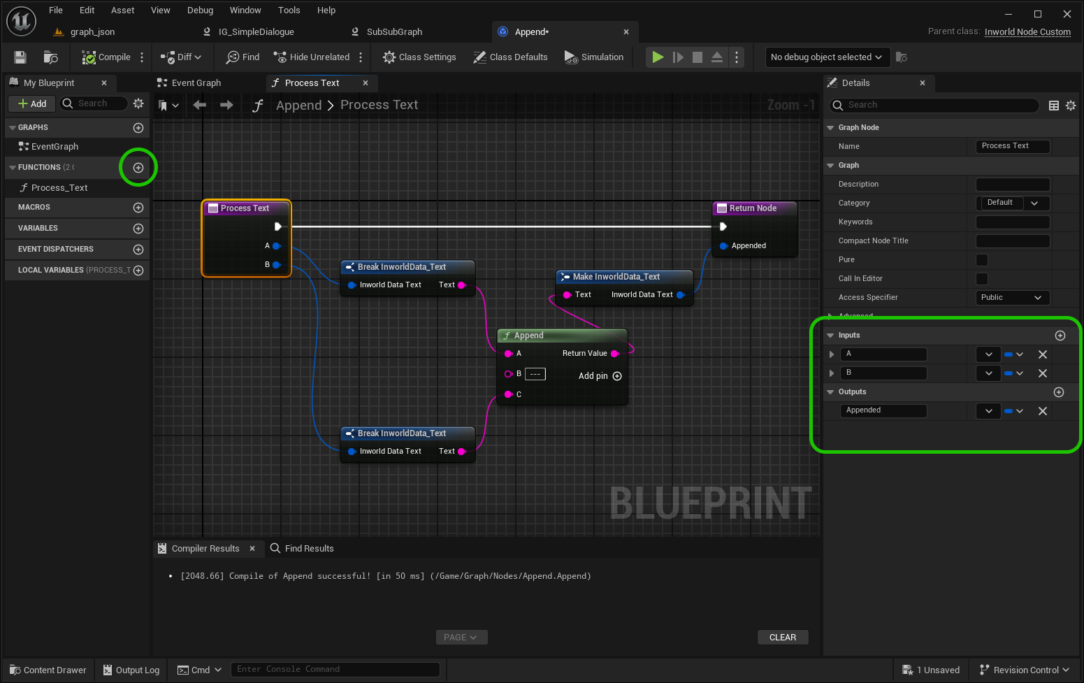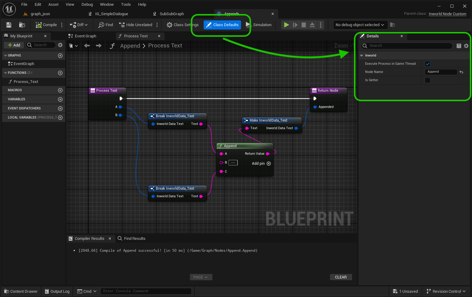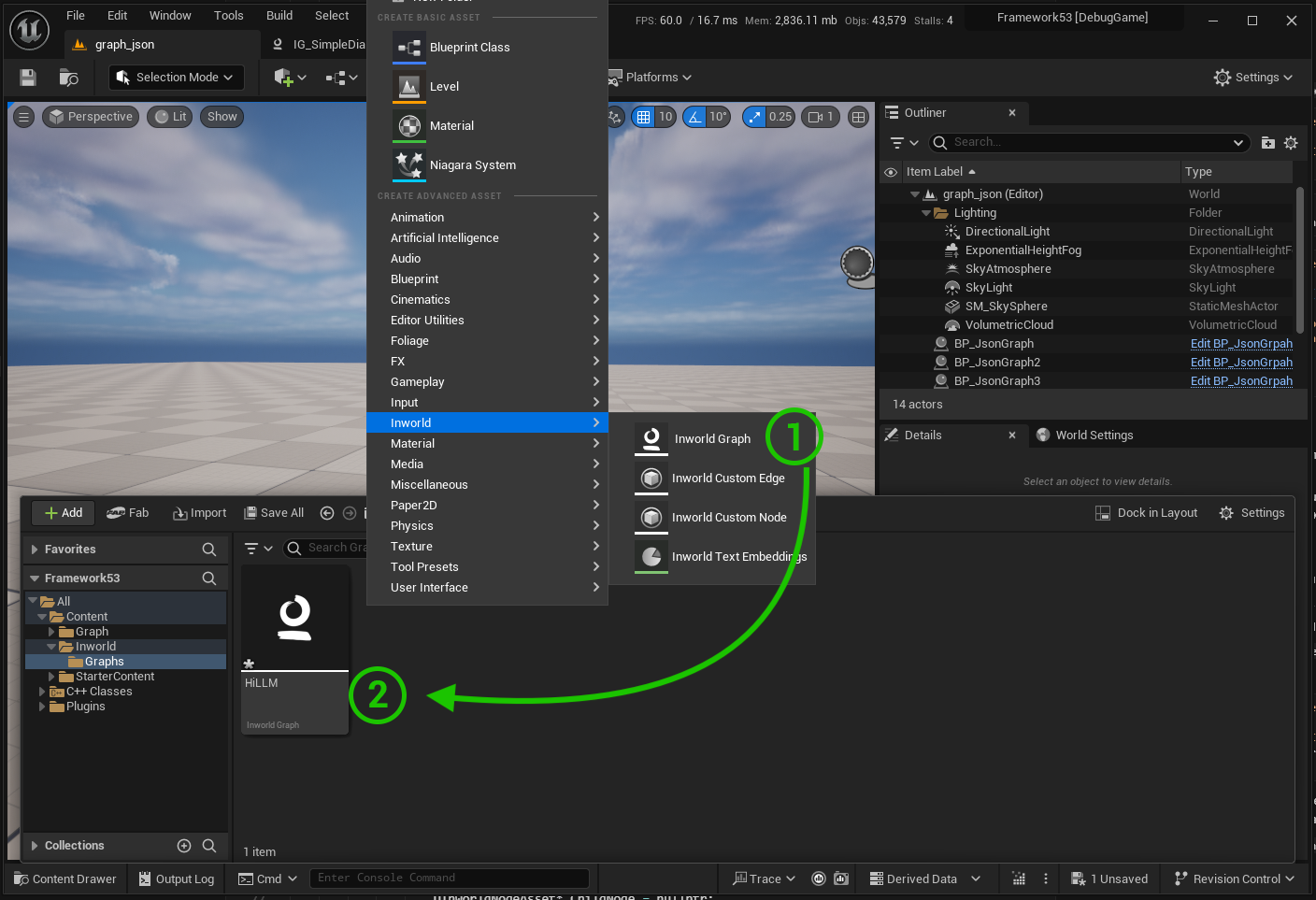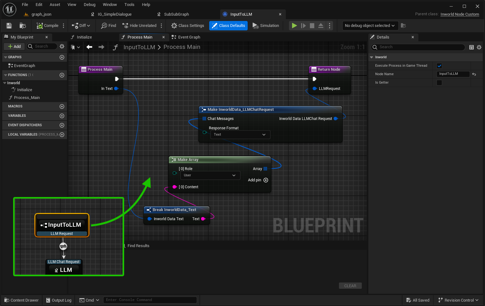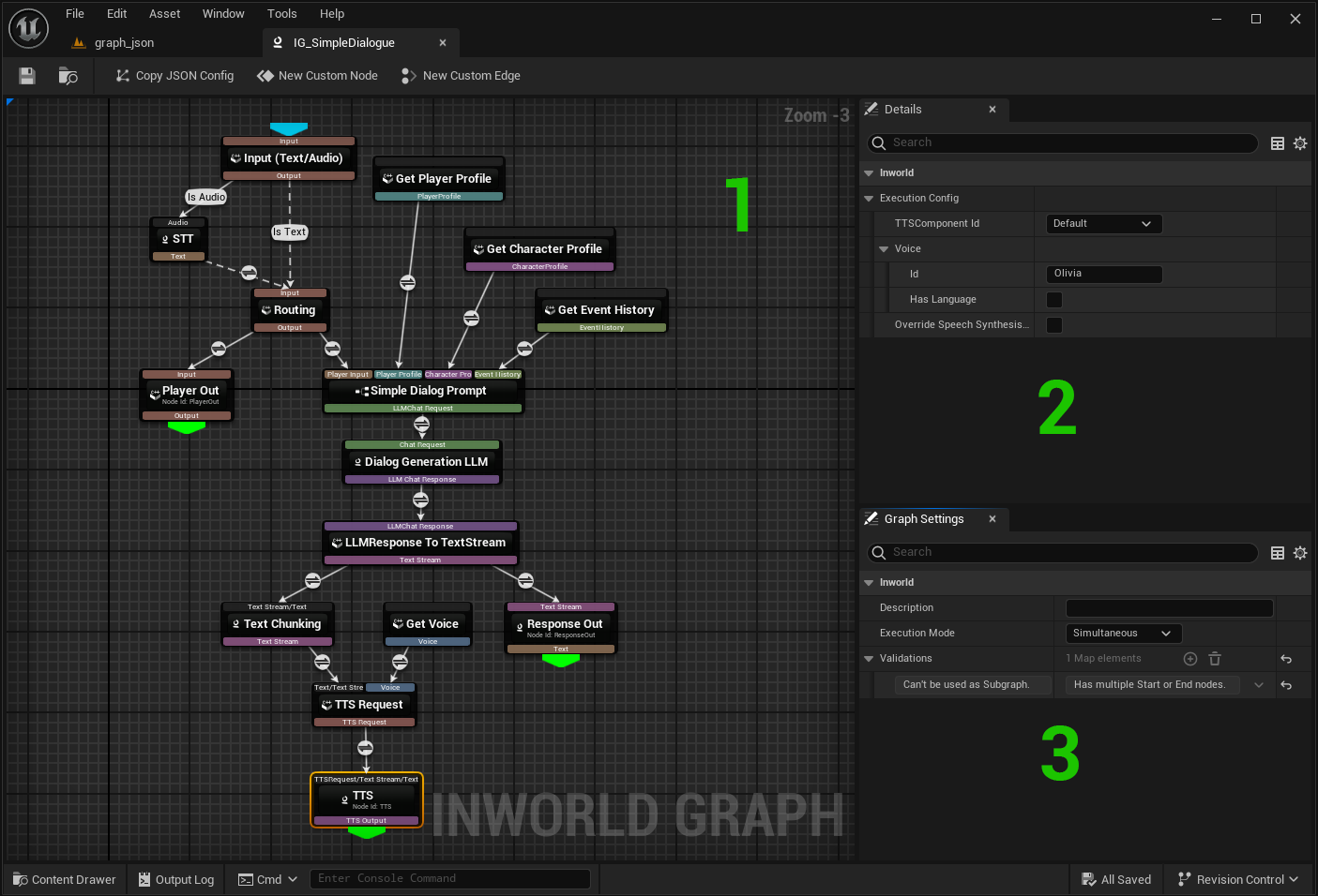 - Name and save the asset > Double-click to open Inworld Graph Editor.