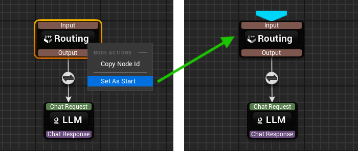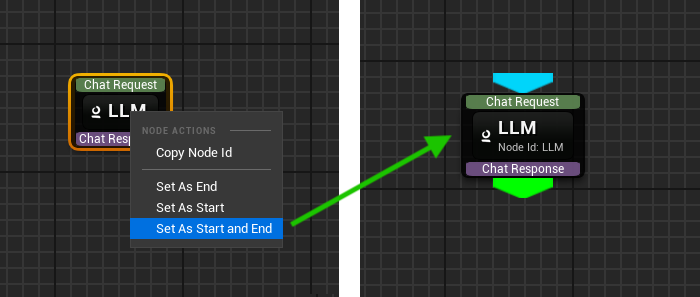 - Mark a node as Start (right-click on node > Mark as Start).