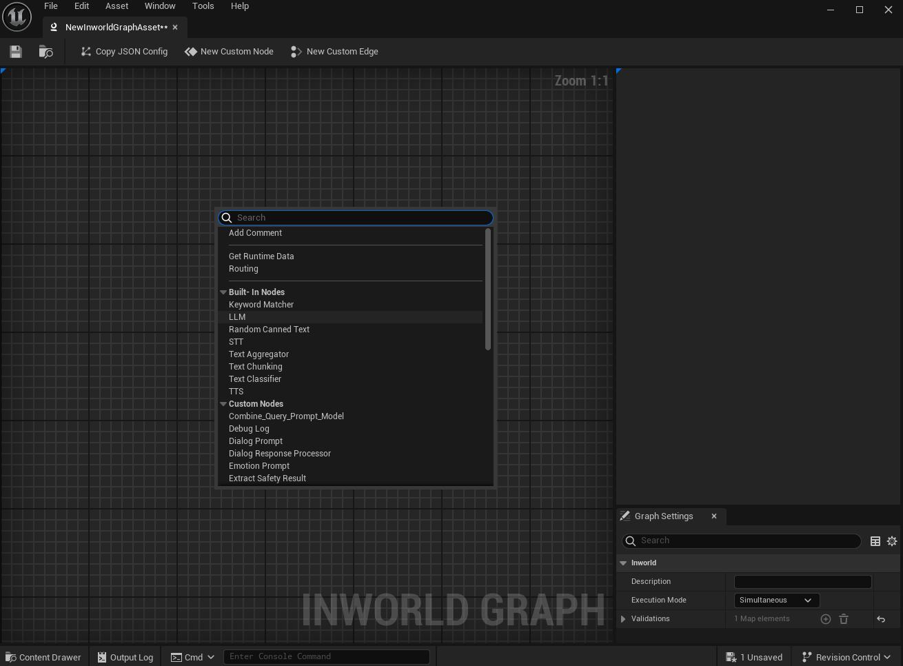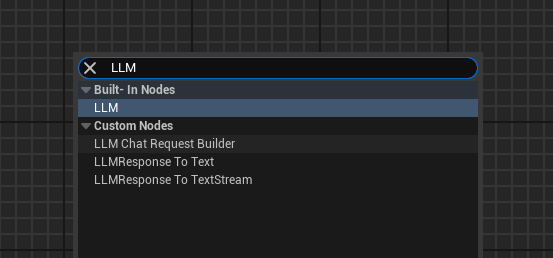 To add a LLM node to your graph (or create a graph with just an LLM node) in the Graph Editor:- Right click to add the LLM node to the graph editor from the available node library