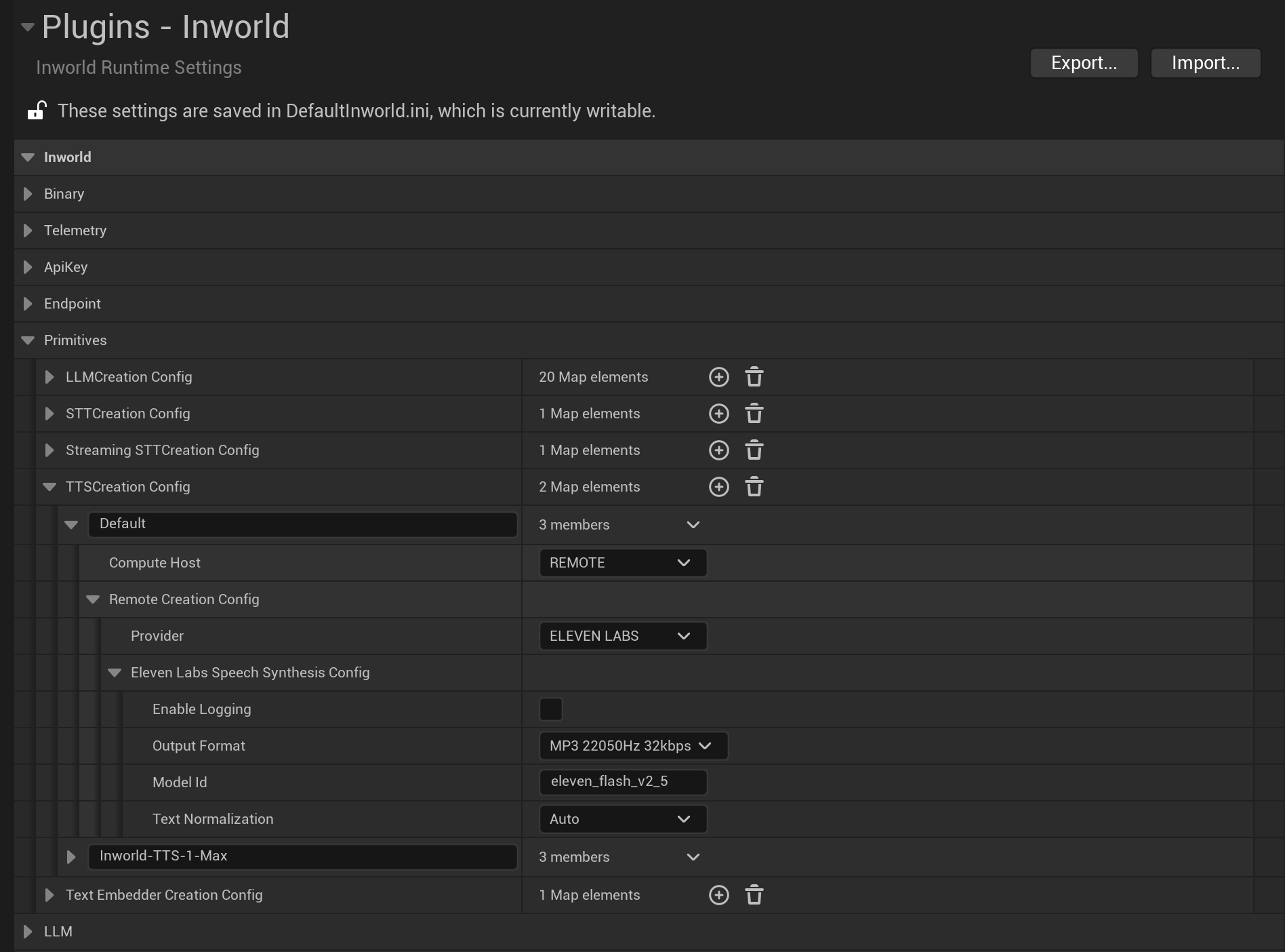 - Speaker Id: The ID of the voice you would like your character to use. For Inworld voices, you can check TTS Playground or use the List voices API for the complete list of options.
