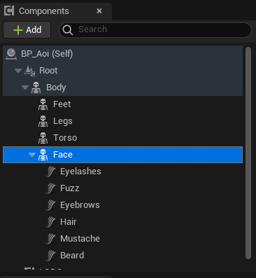 Select the character’s Face in the components menu
